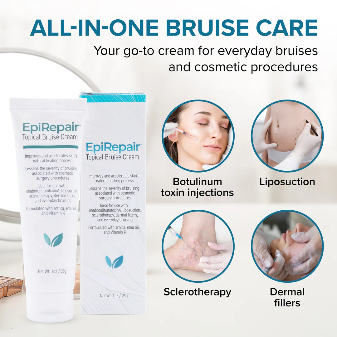 EpiRepair bruise cream is fortified specifically to lessen bruising associated with everything from everyday bruises to cosmetic procedures such as OnabotulinumtoxinA or "Botox", Liposuction, sclerotherapy, or dermal fillers.
