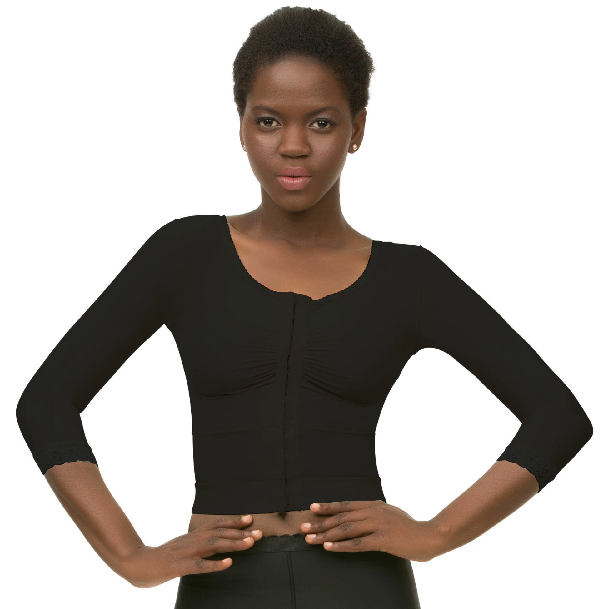 Features: The vest and bra combination has hook and eye closure in front with a 2" elastic band. Three different sleeve lengths to choose from. Vest/Bras combined with Sleeves are designed to provide compression in the upper torso and arms. They enhance the recovery of an arm lift, liposuction, and breast surgery. Surgical Bras are a vital component in the recovery from a breast implants, breast reduction, breast reconstruction, mastectomies, or any other breast augmentation. Know the difference between a Surgical Bra and Retail Bras! When used correctly, surgical compression bras will reduce swelling, protect, and stabilize the breast area during the surgery recovery period.